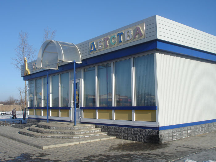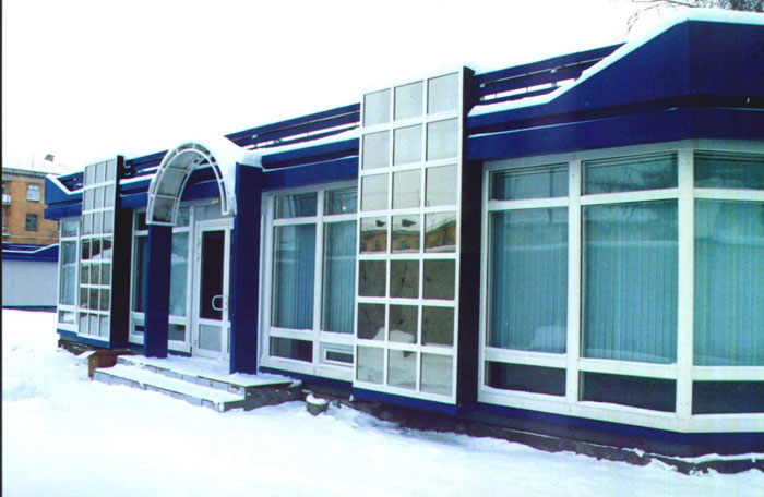 Декоративная отделка фасадов: алюминиевый композит "алюкобонд", алюминиевые витражи с двухкамерными стеклопакетами